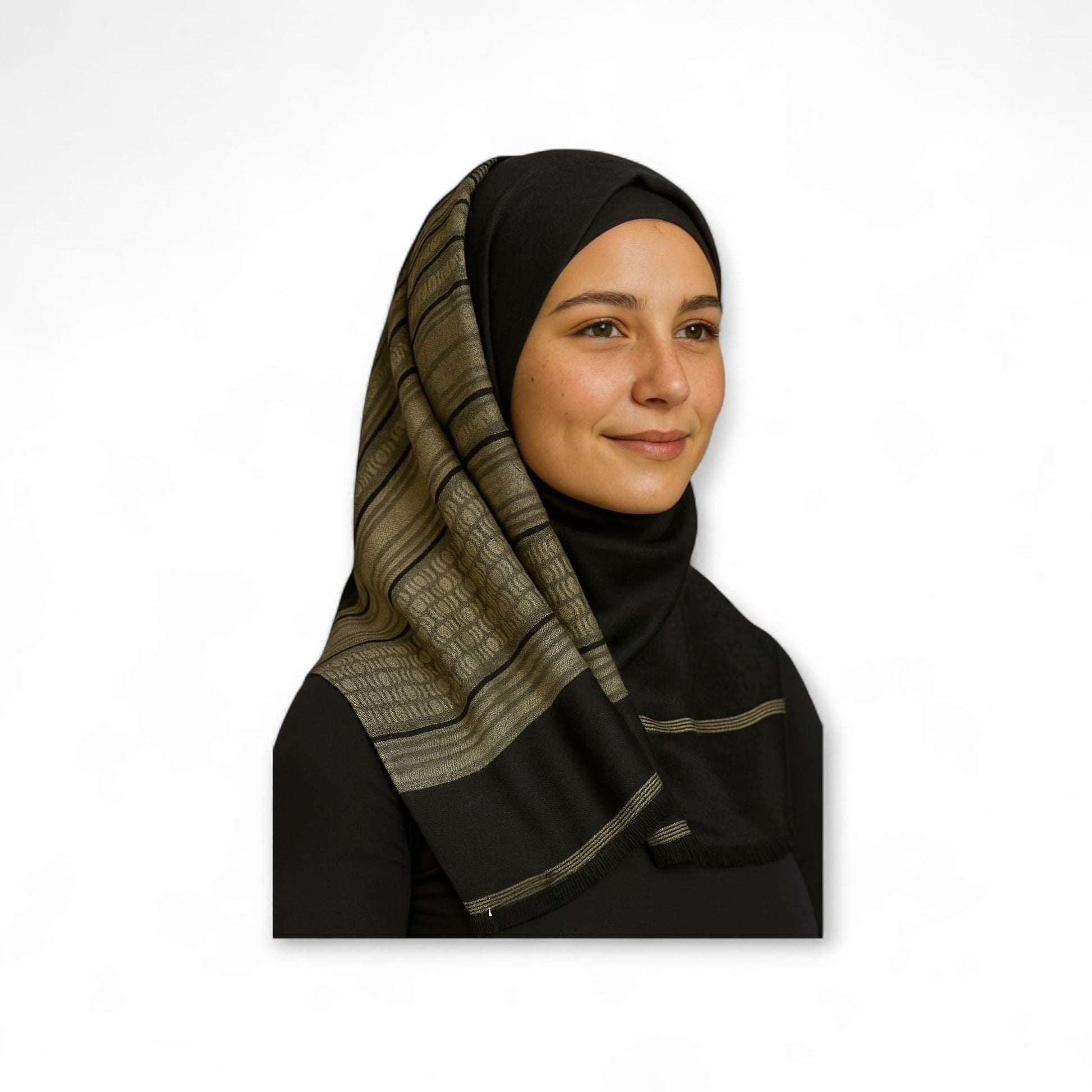 - Lightweight cotton crepe hijab with a textured, breathable fabric.