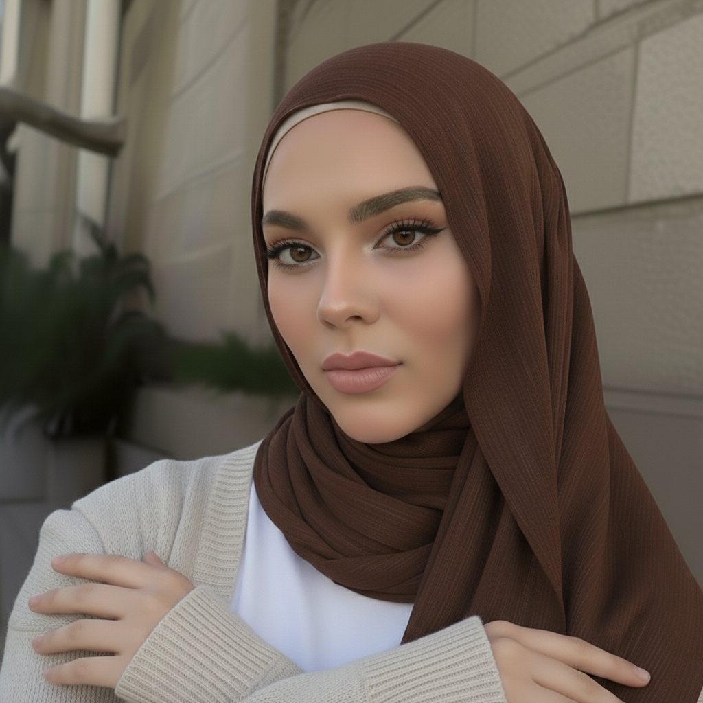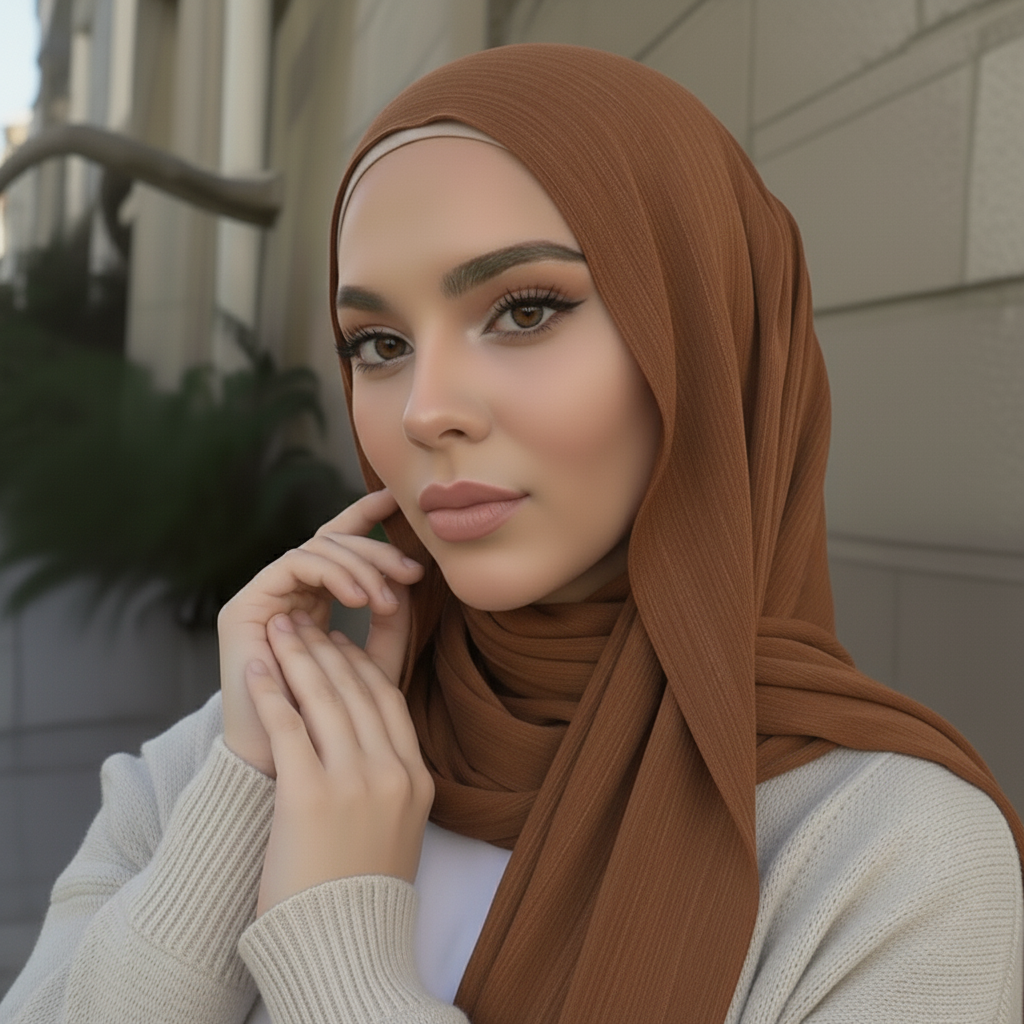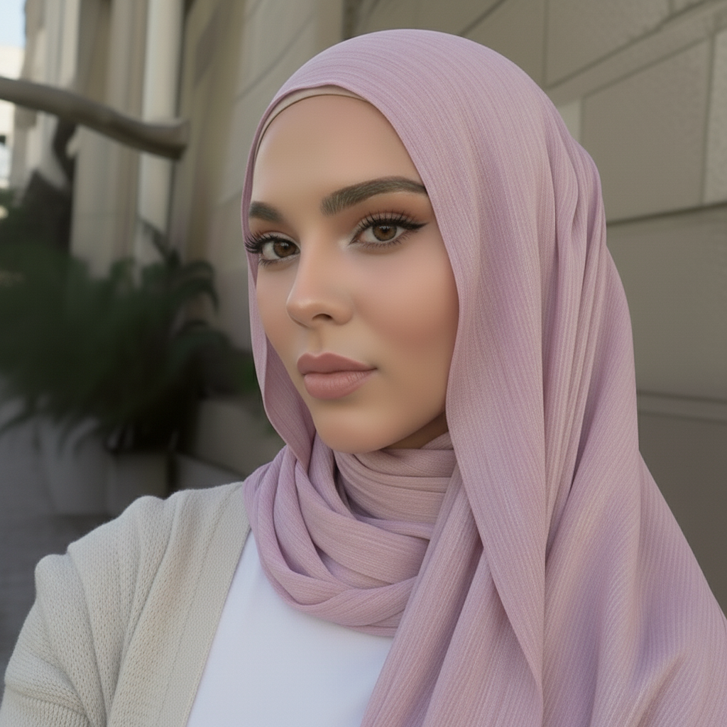 Elevate your style with our Silk Satin Crinkle hijab, a luxurious piece featuring a radiant mirror-like finish that instantly illuminates your face. Combining exceptional softness with a unique non-slip texture, it offers a sophisticated drape that is perfect for both special occasions and everyday elegance.